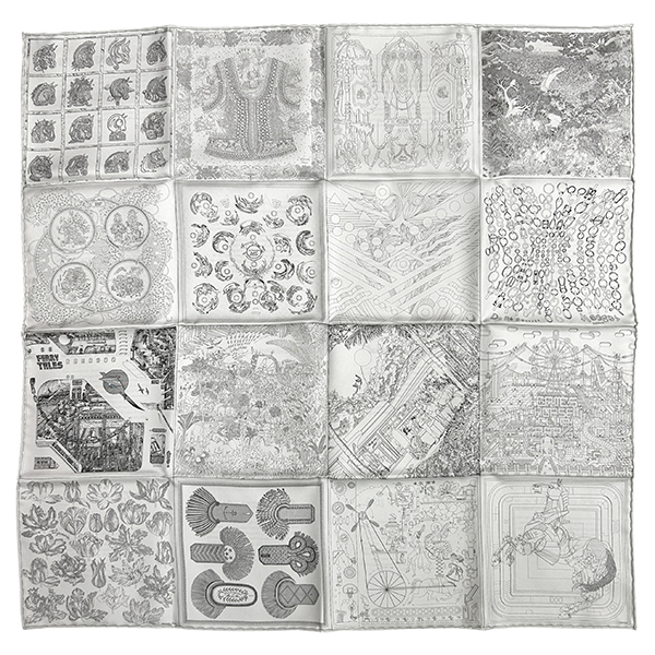 - エルメス カレ 60 ダブルフェイス ロボカバール スカーフ シルク グレー ホワイト 4113
