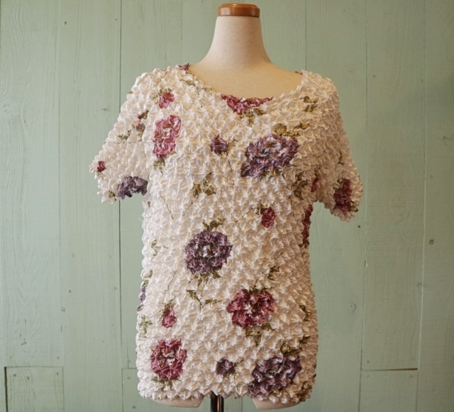 - ◆ UNKNOWN 半袖ポップコーントップス S 白 花柄/ビンテージ オールド レトロ アメリカ古着 レディース ポリエステル