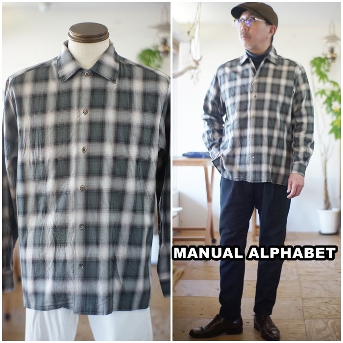 > マニュアルアルファベット MANUAL ALPHABET ツイル オンブレ オープンカラー 長袖シャツ ma-s-768 サイズL