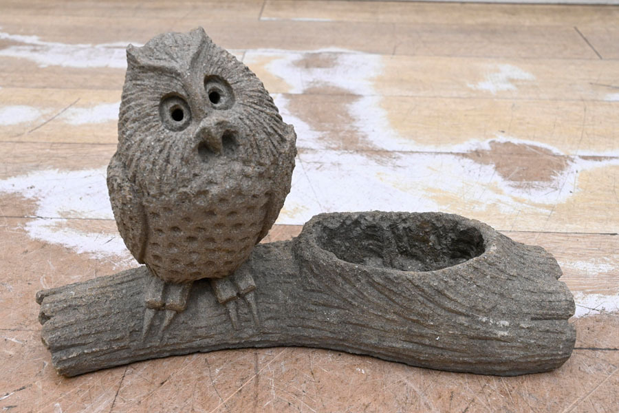 - BZ072 石像 彫刻 フクロウ 梟 枝乗りふくろう
