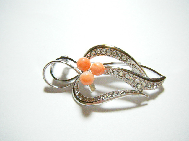 - ★ブローチ 珊瑚 サンゴ シルバーカラー 【NA13】