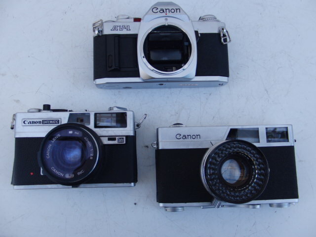 - ◆CANON/キャノン◆中古フィルムカメラ 3台セット Canon AV-1、AL-2、Canon DATEMATIG、 Canonet Canon LIS 45mm◆管EL-3Box