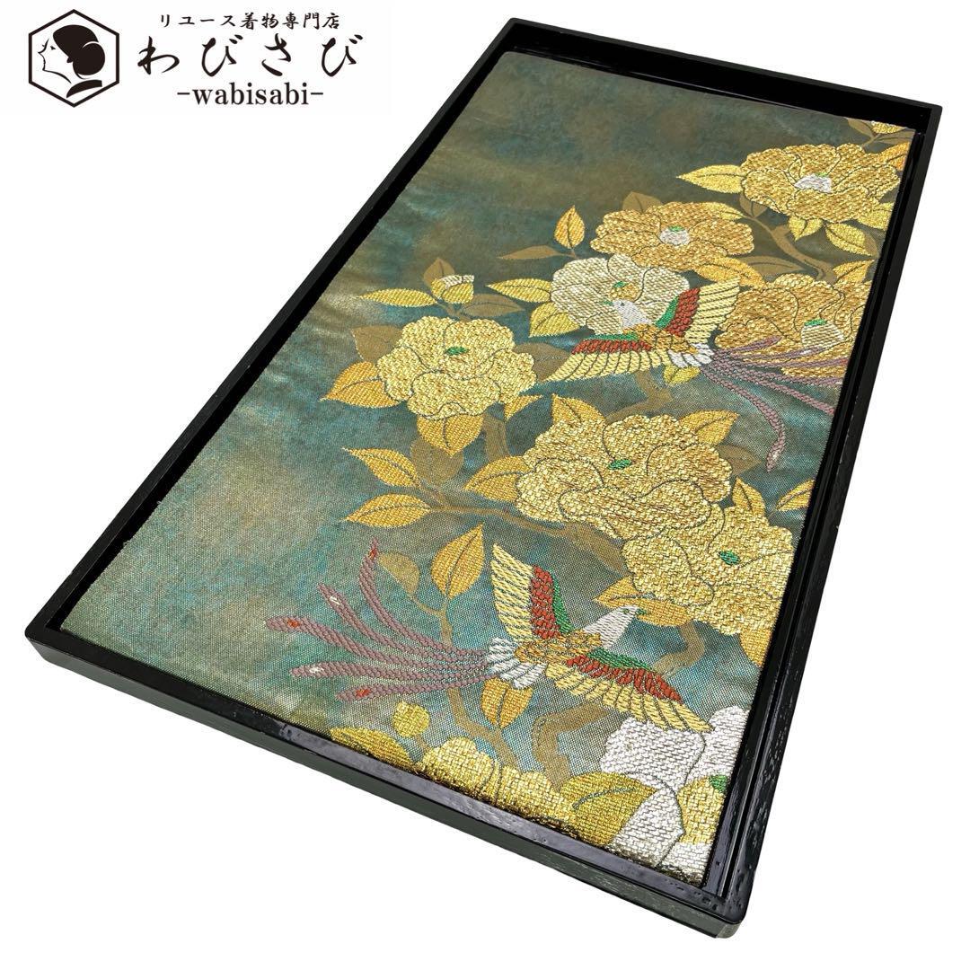 > 袋帯 椿の花模様 花喰い鳥 千種色 金糸 フォーマル O-4744 着物 きもの kimono 和服 和装 中古 リサイクル着物 【送料無料】