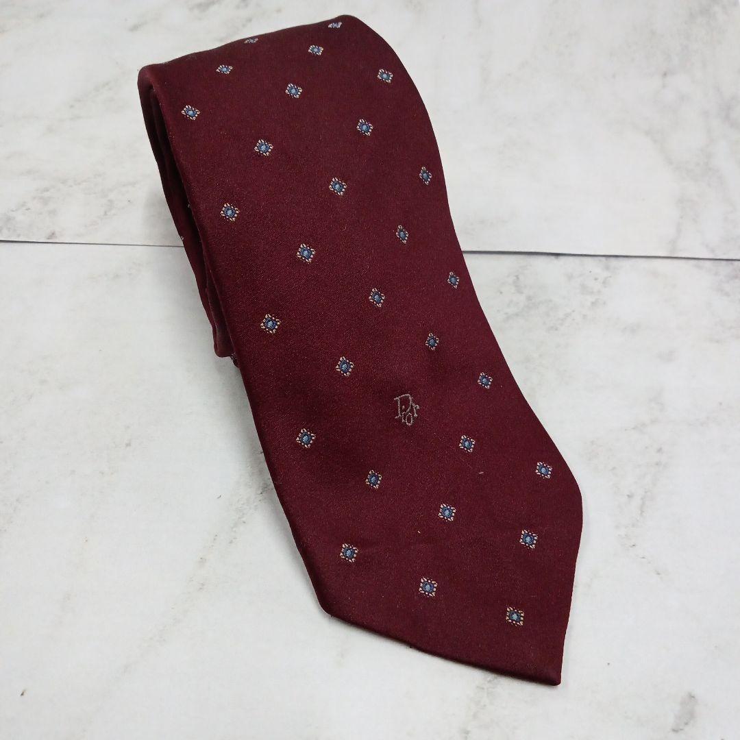 - クリスチャンディオール ネクタイ 赤 ドット柄 シンプル【n292】