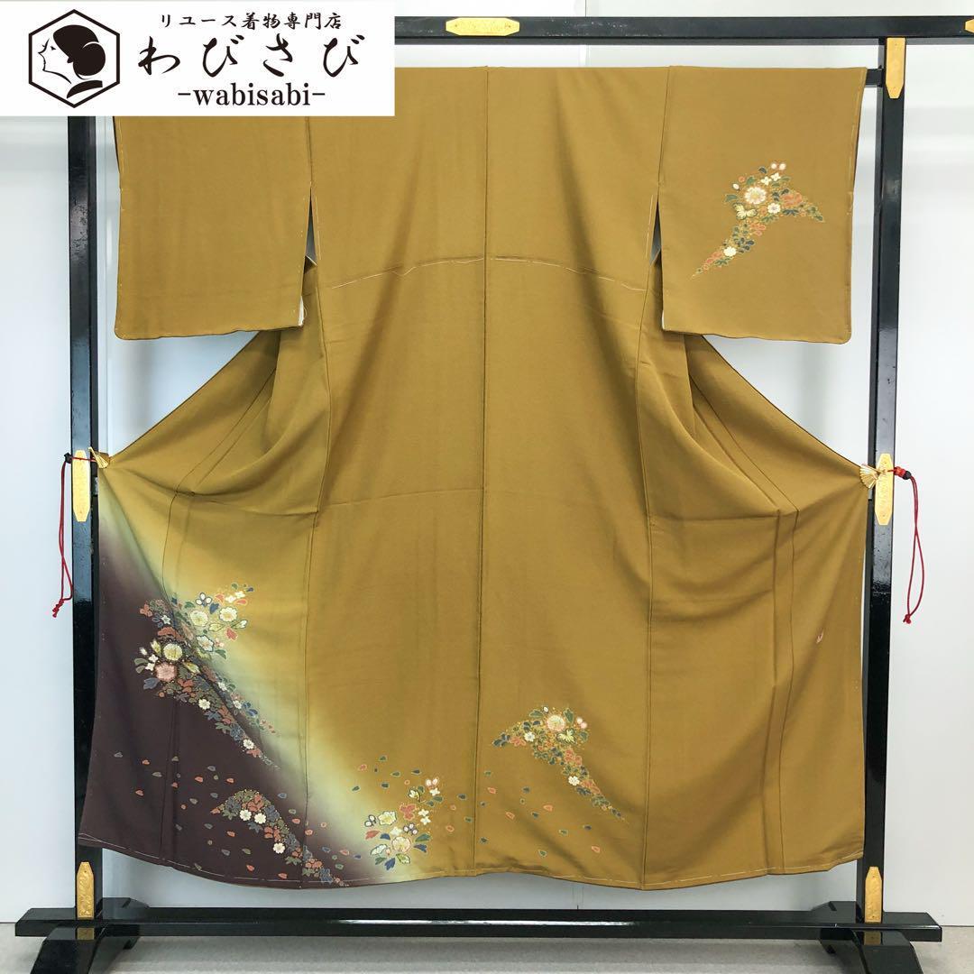 黄土色のお色味に暈し、一廉辻が花と名高い上品な雰囲気の辻が花絞りがデザインされた素敵な柄裄のお品でございます。