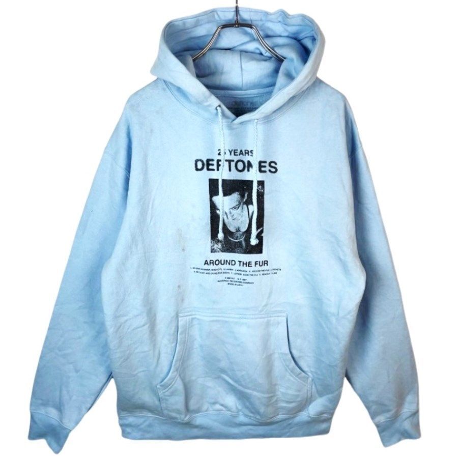 - デフトーンズDeftonesプルオーバーパーカーフーディメタルバンドアーティスト25years around the furジャケ写プリント水色41115