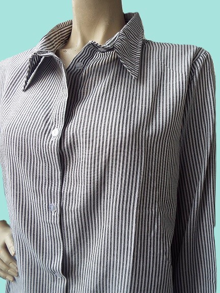 - プレッツォ ブラック 2ミリストライプ シャツチュニック M~Lサイズ 素材:ポリエステル80%、綿20% 新品 PREZZO