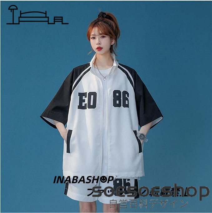 - 夏 半袖 ジャージ上下セット メンズ セットアップ 半袖ジャケット ジップアップ 5分袖Tシャツ ショートパンツ 上下 2点セット 大きいサイズ