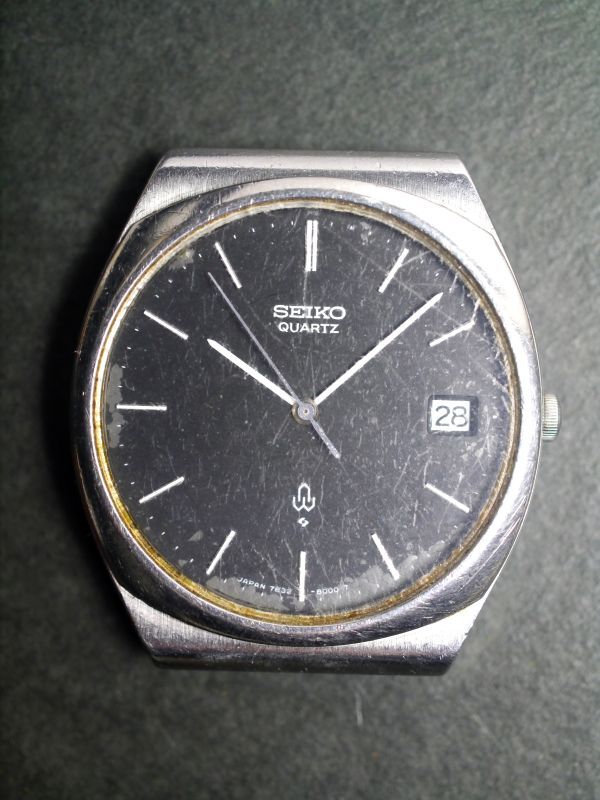- セイコー SEIKO クォーツ 3針 デイト 7832-8000 男性用 メンズ 腕時計 aa119 稼働品
