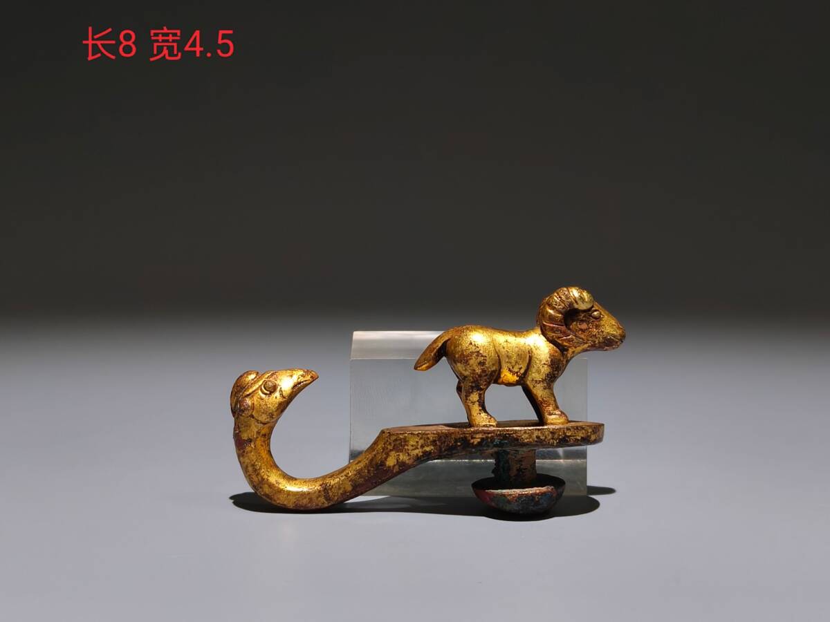 - 『館蔵珍品 漢 青銅製 塗金 羊首帶鈎』置物 賞物 貴重物品 収蔵品 中国古美術