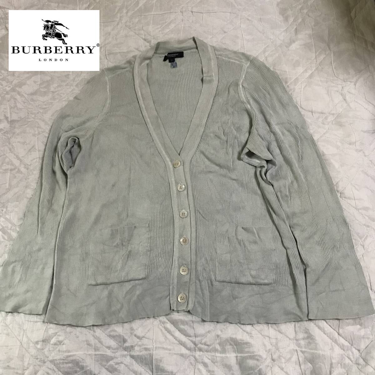 - バーバリーロンドン 薄水色シルク100%長袖カーディガン 5 t185