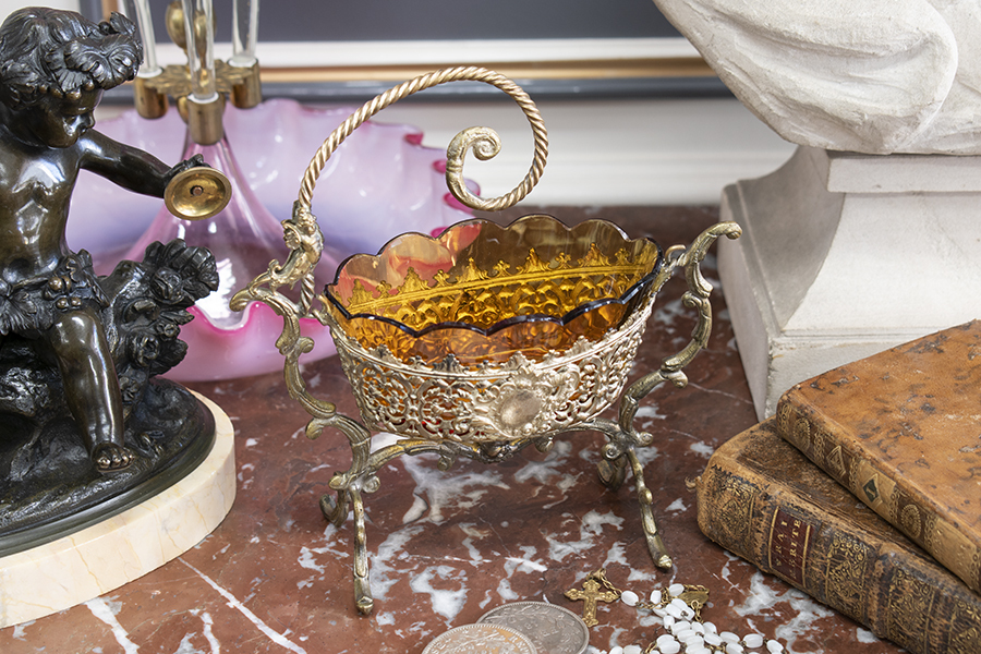 こちらはブロンズでつくられた、小さなゆりかごの小物入れです。