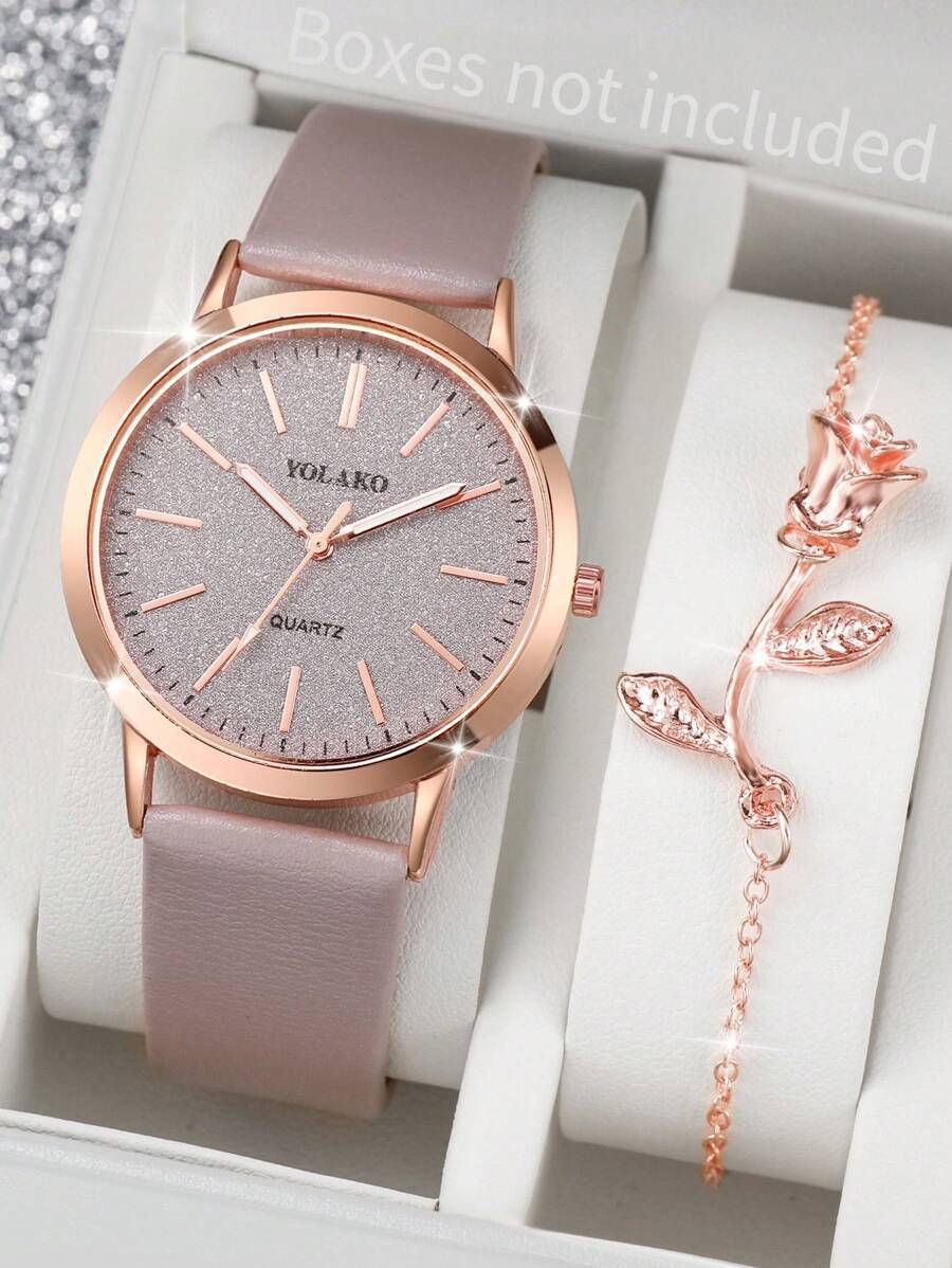 - 腕時計 レディース セット 2点セット レディース 腕時計 & ブレスレット、レザーベルト 刻印文字盤クォーツ(時計ボックス無し)