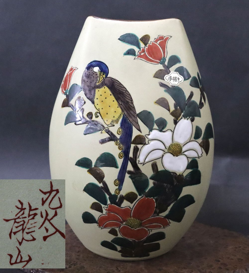 ・商品は 花瓶 九谷焼/龍山 花活け 手書き/花鳥図 未使用保管品 です。