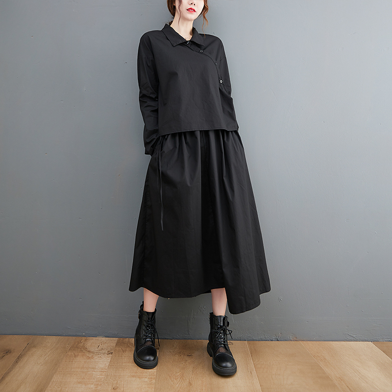 > 「同梱1万円送料無料」春新品*カジュアル*20304050代*ゆったり大きいサイズ*体型カバー**長袖*ロングシャツワンピースL~XL 黒