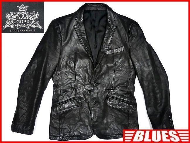 > 即決★GGPX★メンズM レザーテーラードジャケット 黒 ブラック 馬革 ホースハイド 本革 スーツ 本皮 ビジネス 革ジャン 背広