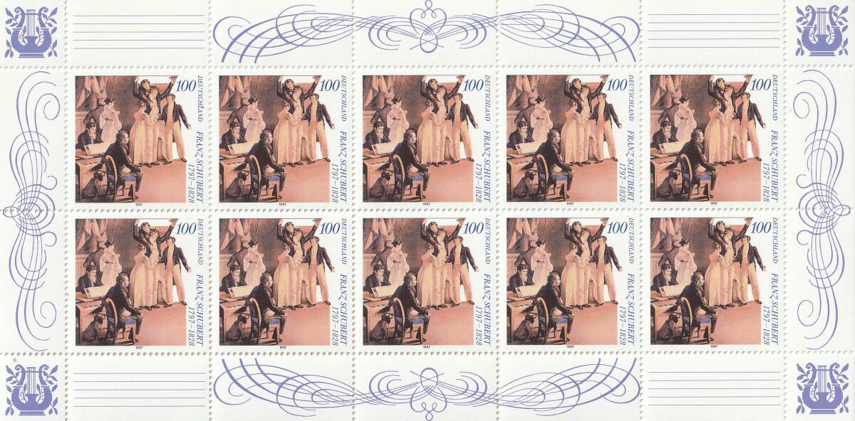 - (ドイツ)1997年シューベルト10枚シート、スコット評価14ドル(海外より発送、説明欄参照)
