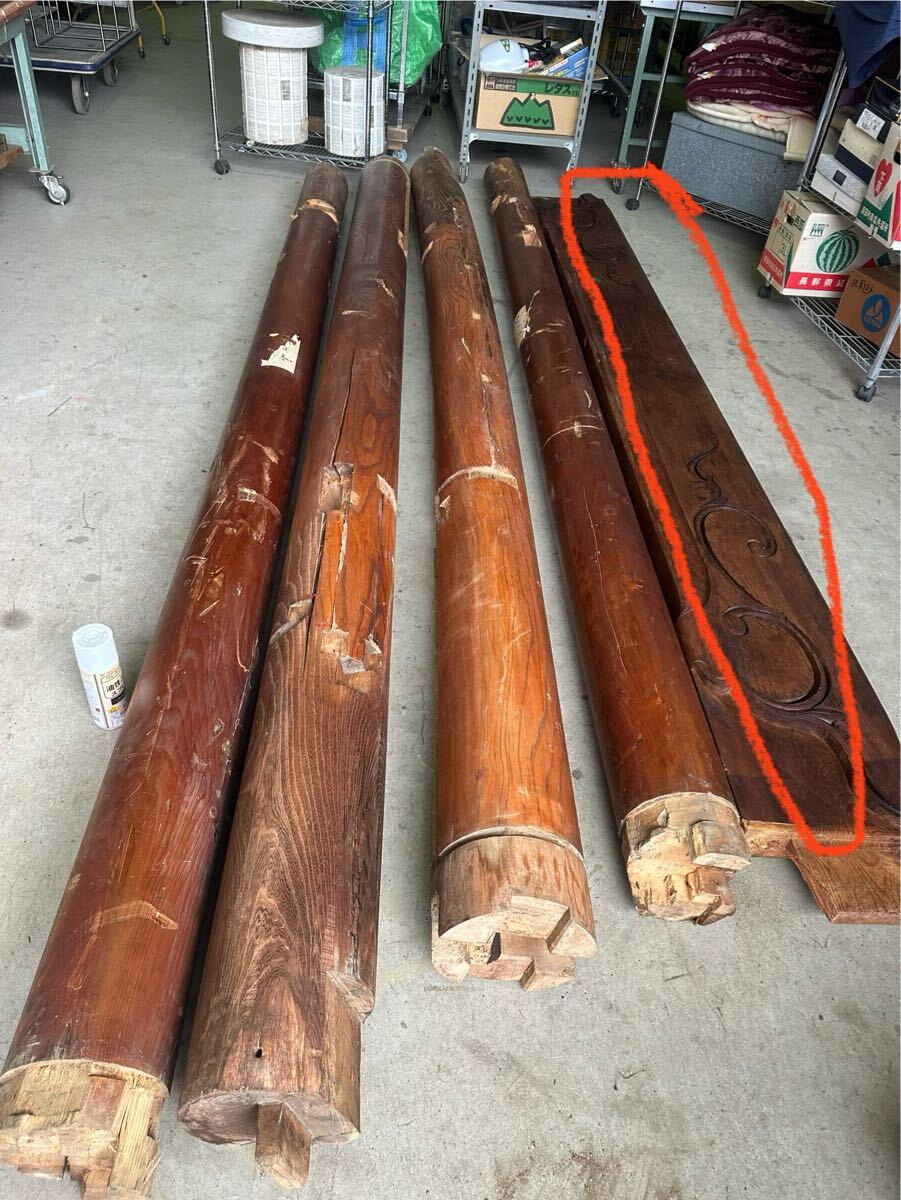 - 古いお寺の柱 欅? 素材不明 90キロ アンティーク 古材 diy