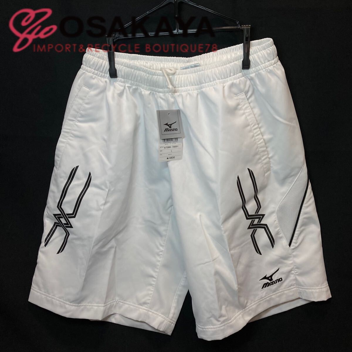> 新品未使用 MIZUNO A75RH-70001 ハーフ ショーツ パンツ L サイズ ホワイト プリント ユニセックス 陸上 テニス バド バスケ トレーニング