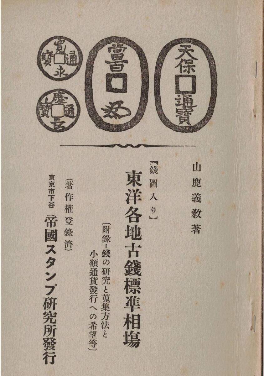 - ※東洋各地古銭標準相場(銭図入り)昭和13年山鹿義教著・帝国スタンプ研究所発行 附録:銭の研究と蒐集方法と小額通貨発行への希望等