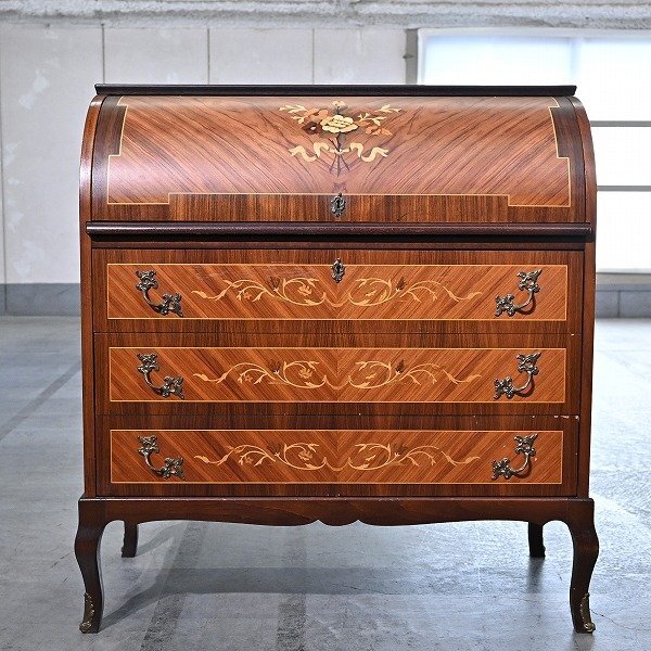 > 北欧スウェーデン MIS社 ライティングビューロー ローズウッド材 木象嵌 真鍮 猫脚 チェスト 収納 引き出し 3段 3杯 サイドボード