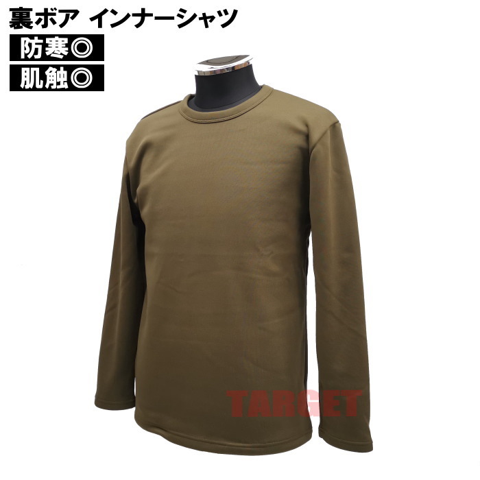 - 自衛隊 XLサイズ 裏ボア インナーシャツ 長袖 クルーネック OD メンズ サバゲー アウトドア ミリタリー 作業服 H-44862