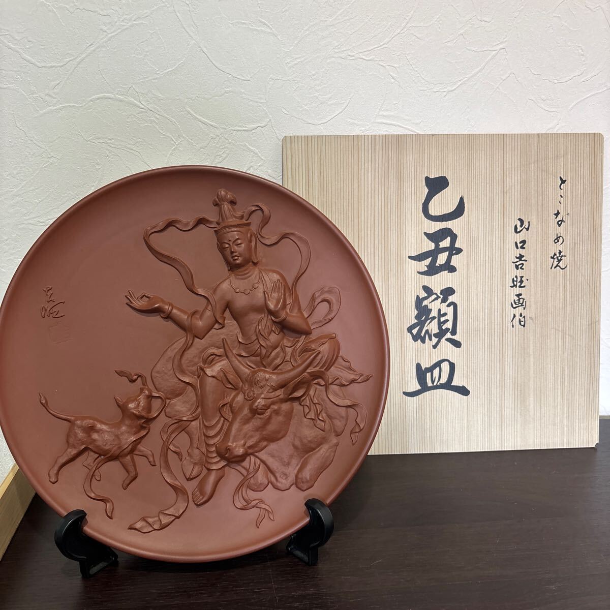 - 山口吉旺画伯 常滑焼 木箱付き 丑額皿 飾皿 置物 飾り皿 伝統工芸 陶器