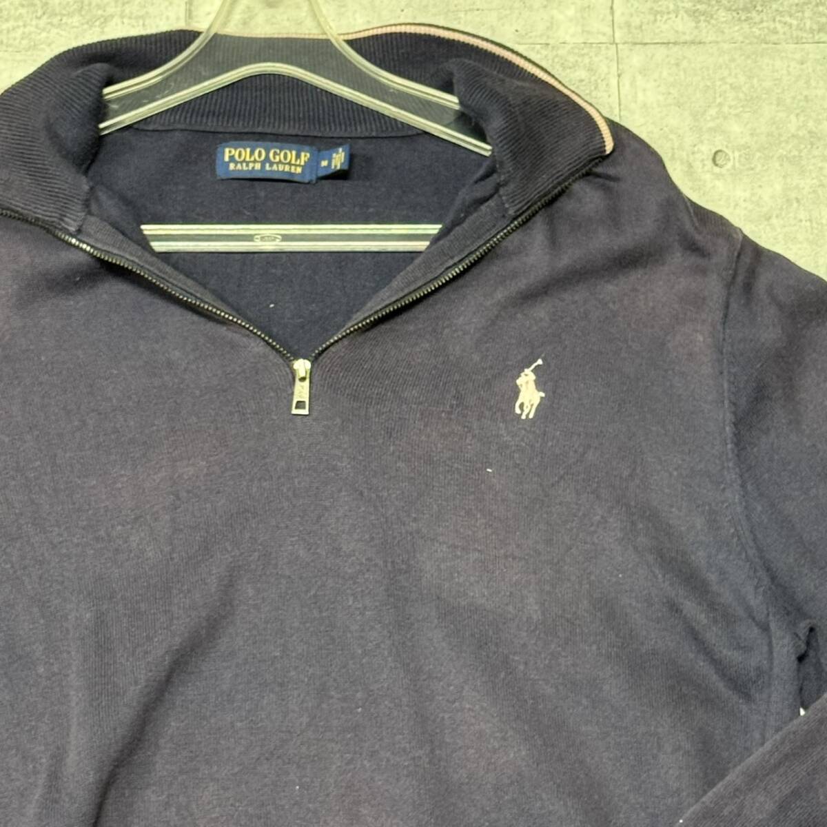 - POLO GOLF RalphLauren ハーフジップ ポロシャツ フェード ポロゴルフラルフローレン 薄手のスウェットトレーナー 色褪せ ナス紺 早4781