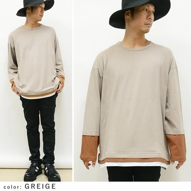 - ルーズシルエット フェイクレイヤード 長袖Tシャツ rv8021 メンズ 長袖Tシャツ 新品 ベージュ M
