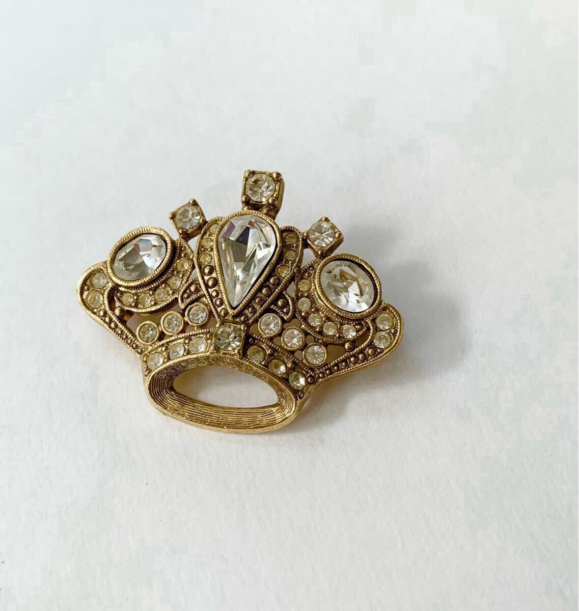 > 【USED】フランス購入 希少 ヴィンテージ ゴールドトーン ロイヤル クラウン 王冠ブローチ ガラス ペースト コスチュームジュエリー