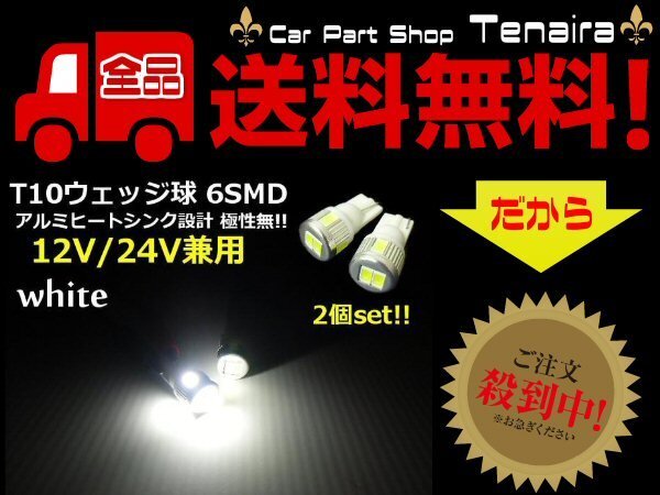 > 12V 24V 兼用 T10 白 LED バルブ 2個 セット ウェッジ ホワイト 6SMD トラック マーカー スモール ポジション メール便送料無料/6
