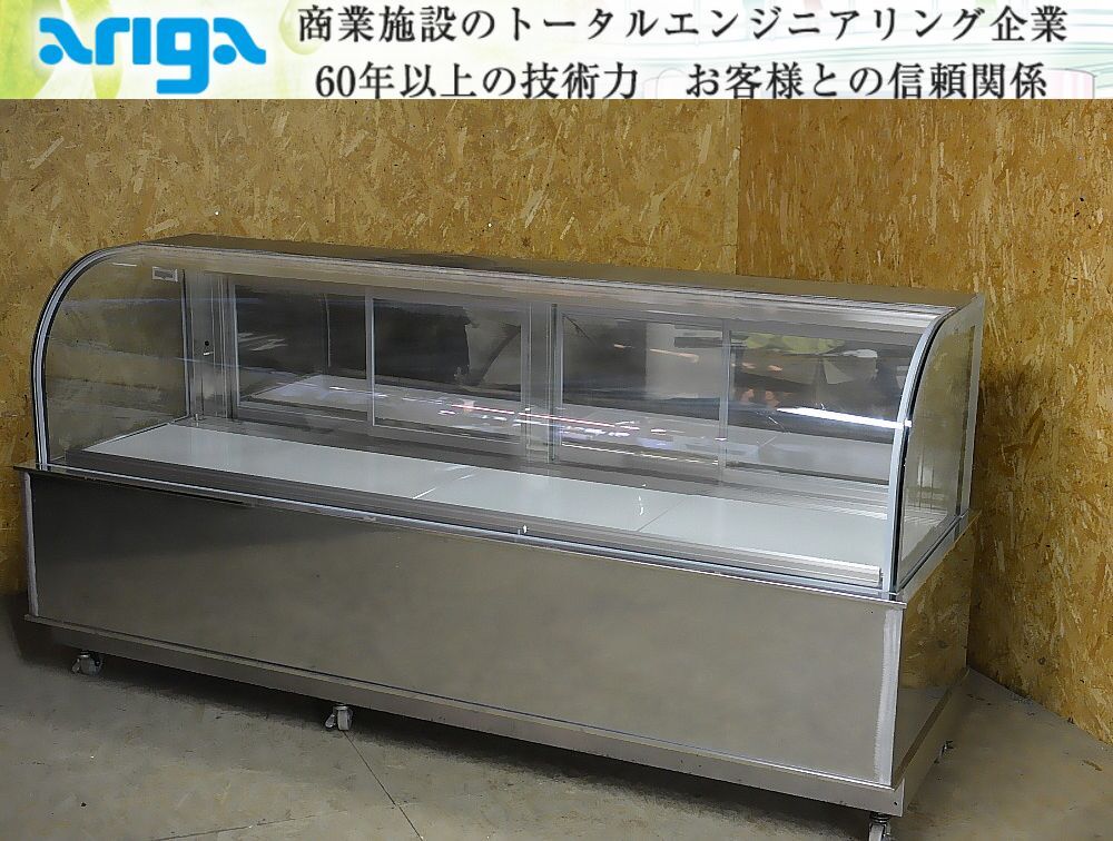 --------- 動作確認済/すぐ良く冷えます 株式会社アリガ 冷蔵ショーケース 冷蔵ケーキケース 幅240㎝ LED照明付き キャスター付き ZPC-0802RZ ---------
