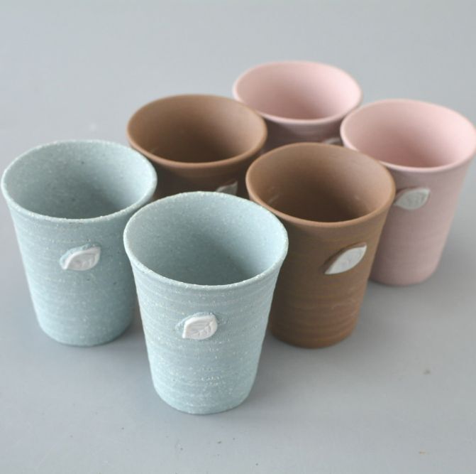 - フリーカップ 無釉 ホワイトレリーフ 3色6個セット 湯飲み