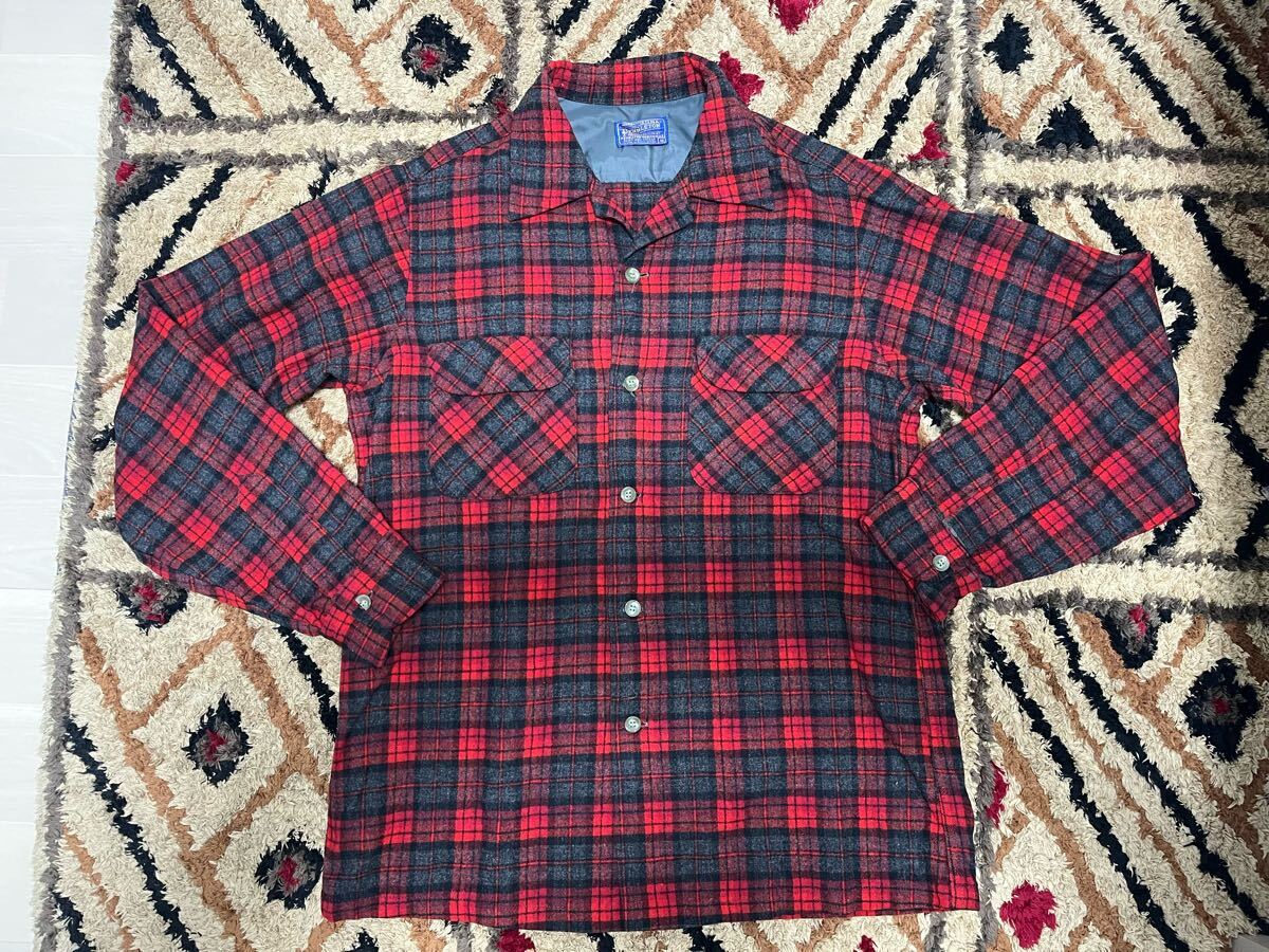 - 当時物 オンブレ 70s ビンテージ ペンドルトン チェック レッド ブラック ウール シャツ オリジナル PENDLETON USA製 アメリカ