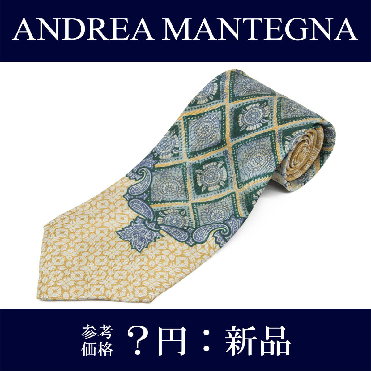 > 送料無料 アンドレアマンテーニャ ネクタイ 新品 ワイドタイ シルク 黄色 緑色 青 ブルー 水色 紫色 珍しい パネル 花 紋様 ブランド N667