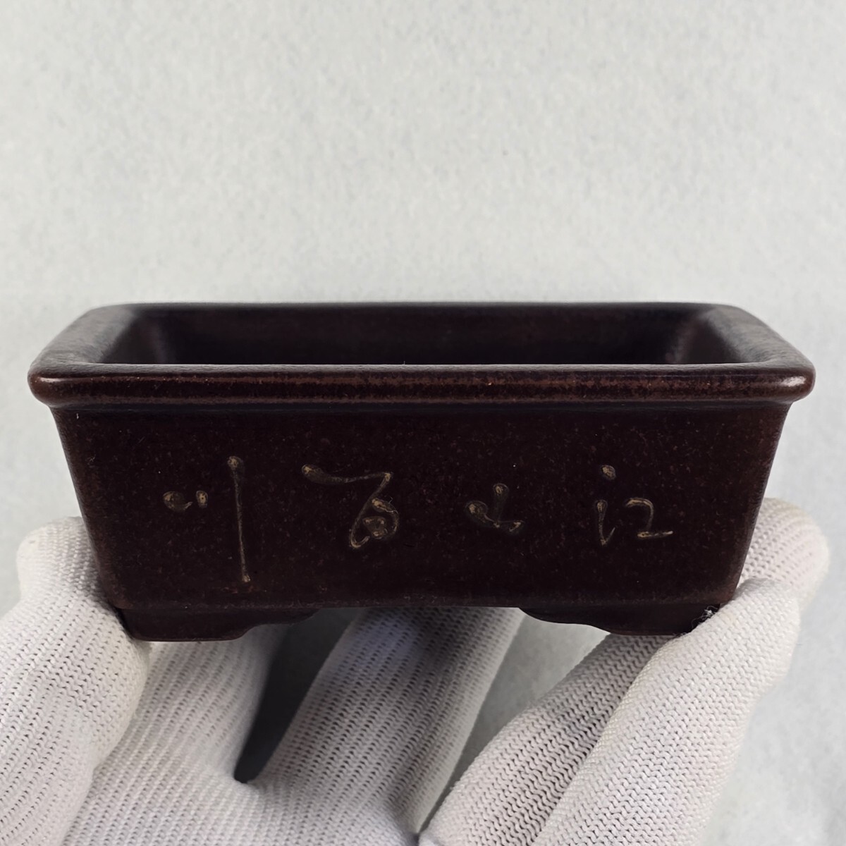 - 収集品 本物宜興紫砂 朱泥 段泥 泥絵 山水紋 小型 盆栽鉢 花器 在銘