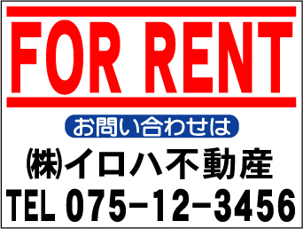 - ¥999社名入不動産募集看板「FOR RENT」Sサイズ45x60cm