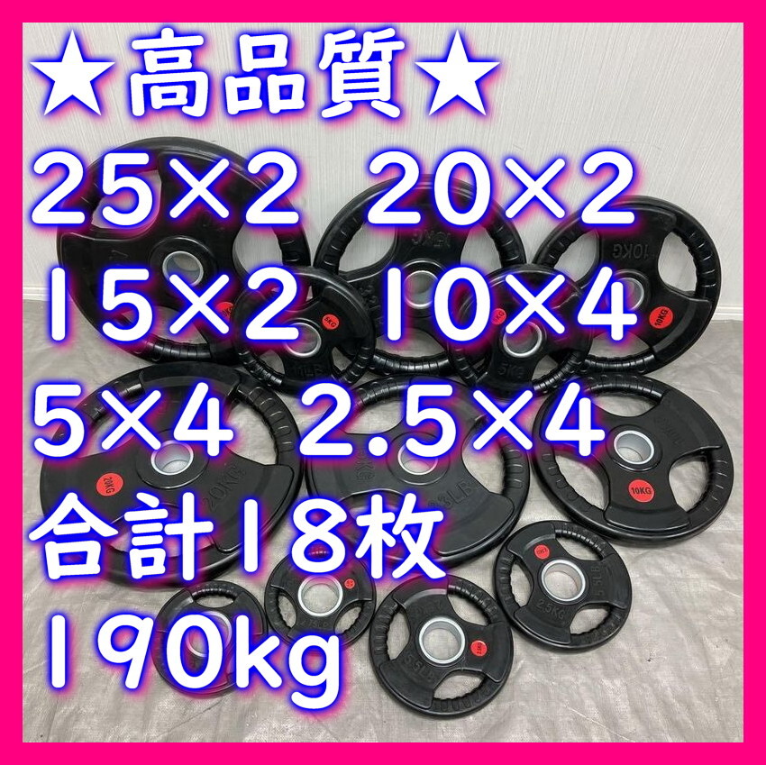 > ★超特価★新品★18枚 合計190kg オリンピックプレート バーベルプレート ウエイト プレート ラバーコート50mm★