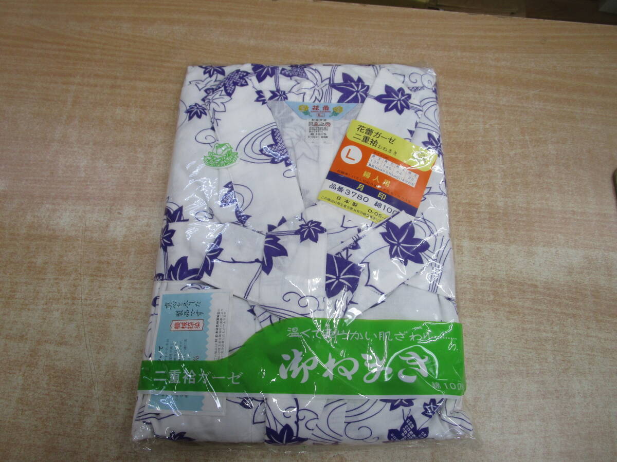 - O417★花蕾ガーゼ 二重袷 おねまき 婦人用 Lサイズ 綿100%★未開封品