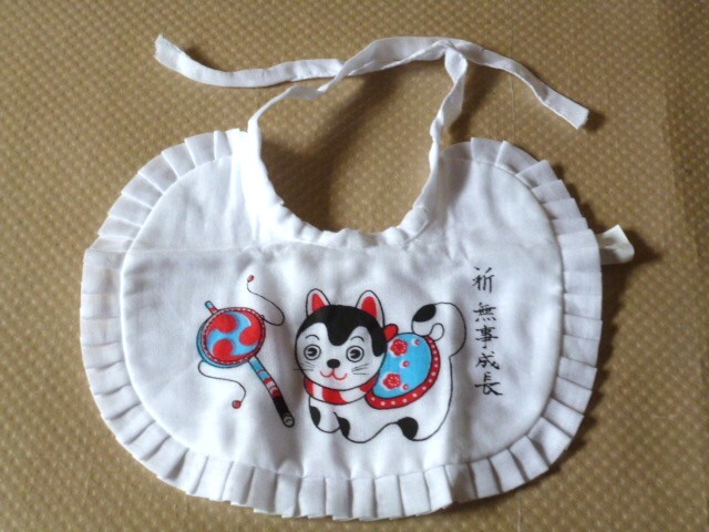 - 祈 無事成長 福犬 張子犬 犬張子 でんでん太鼓 ベビー 赤ちゃん ガーゼ スタイ よだれかけ 新品