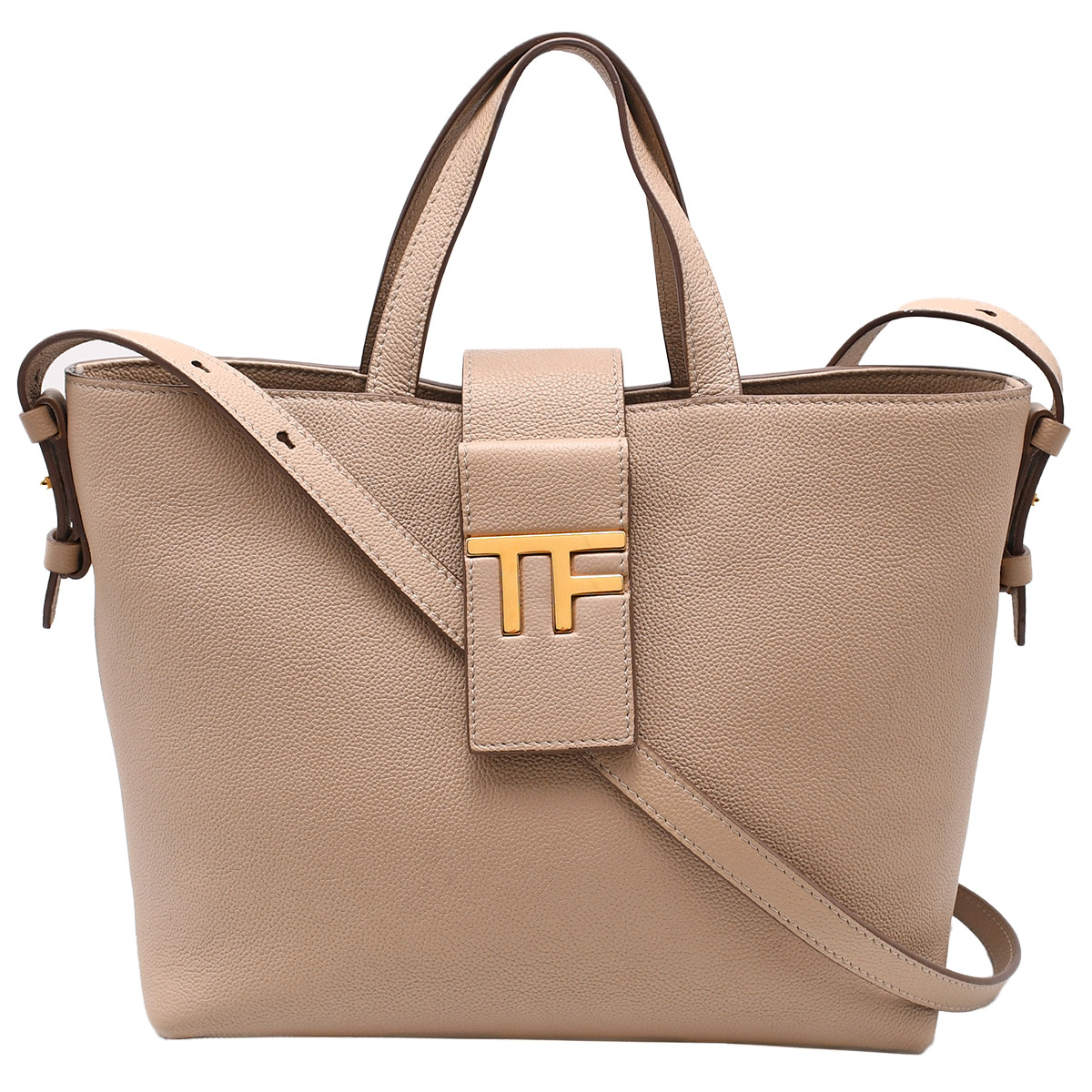 > トムフォード TOM FORD TFロゴ ミニ E/W トートバッグ L1603-LCL297G 2way ショルダー ハンドバッグ ベージュ ゴールド金具 レザー 中古