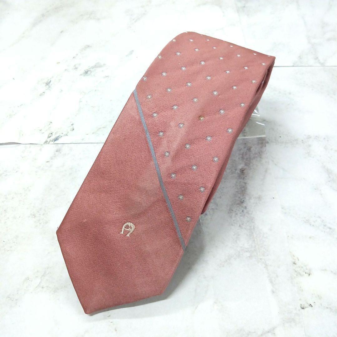 - アイグナー ネクタイ ピンク ドット柄 シンプル 光沢 細め【n621】
