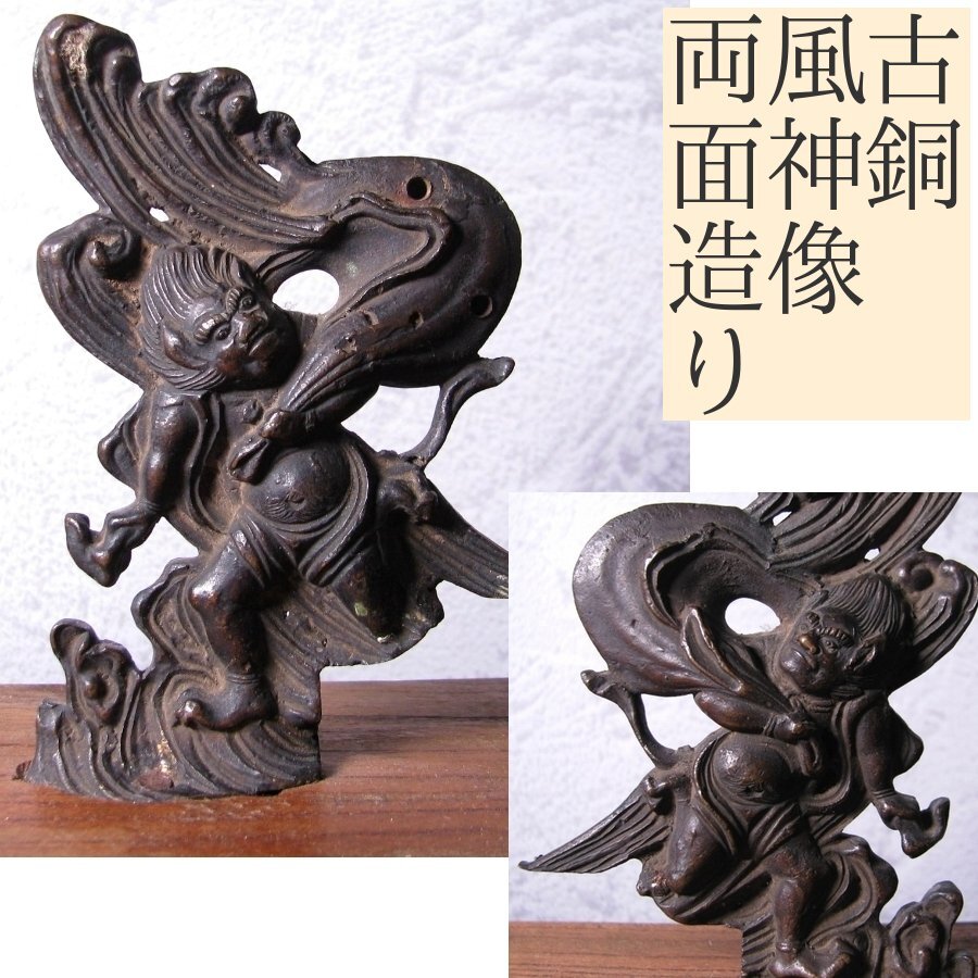 - 仏教美術 古銅の風神像 両面造り 像の高さ:10.7cm 仏像/25c016