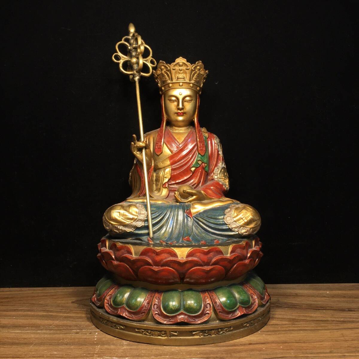 - ▽鴻▽ 銅製 金鍍 彩繪 地藏王菩薩像 置物 古賞物 中国古玩 中国古美術