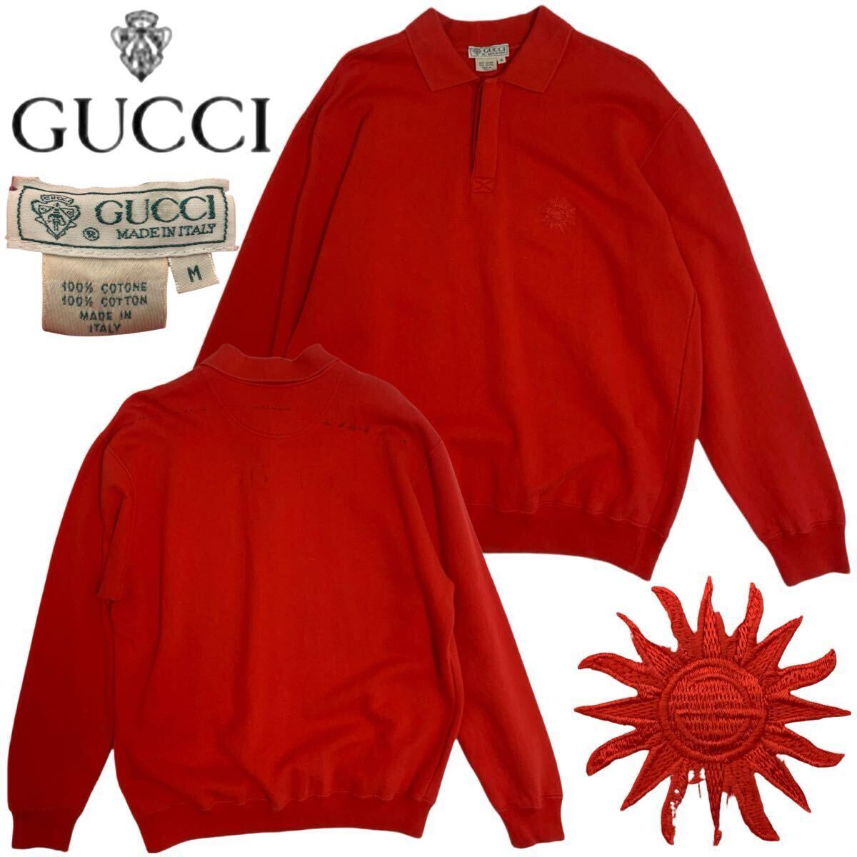 > OLD GUCCI オールドグッチ GUCCI VINTAGE グッチ ヴィンテージ 80s MADE IN ITALY イタリア製 SUN刺繍 スウェットポロ レッド系 アーカイブ