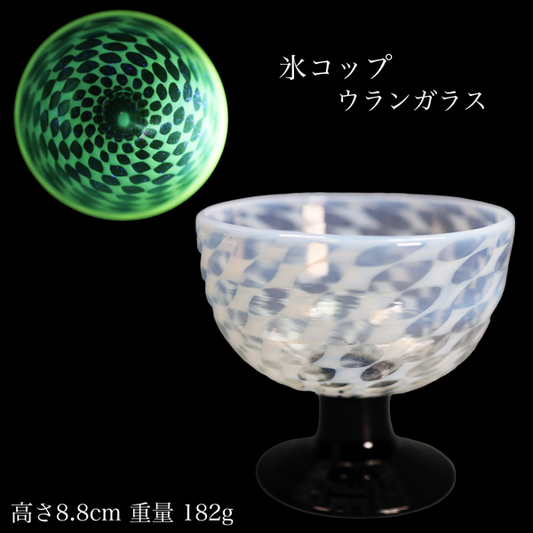 - ◇雅◇ 明治 大正時代 和ガラス 氷コップ ウランガラス 大正ロマン 幅9.7cm/182g 乳白透かし水玉文 /HK.25.2 [G48.2] QT2