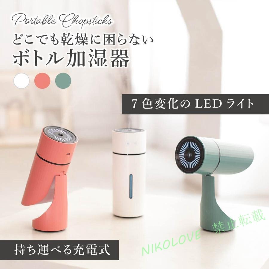 - ボトル型 加湿器 小型 卓上 斜め コードレス オフィス おしゃれ 静音 寝室 机 デスク 濡れない 替え芯 交換フィルター 付きMK025