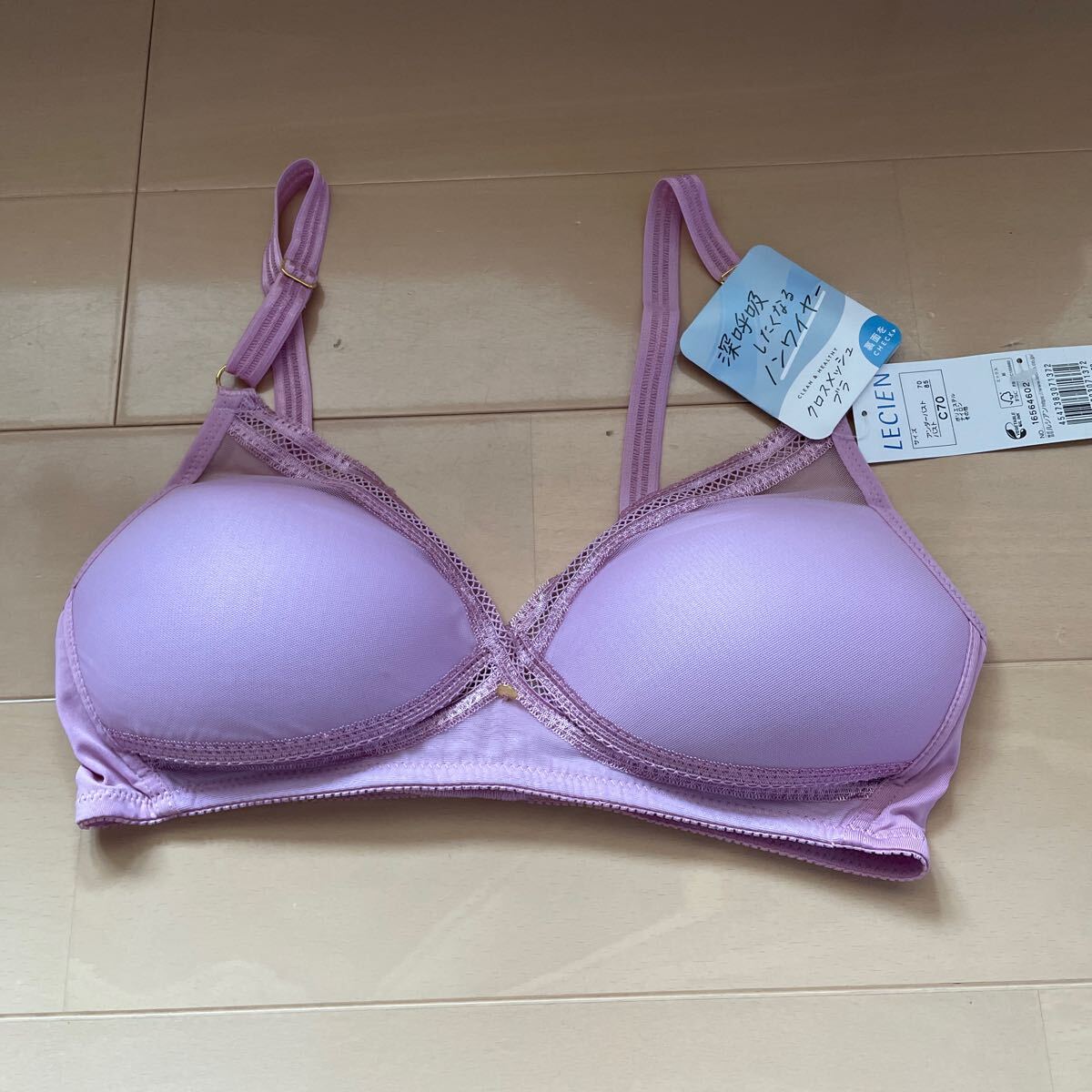 - 送料込み 新品 LECIEN クロスメッシュブラ C70 ピンクパープル フロントメッシュ 吸汗速乾 薄手 モールドカップ 送料無料