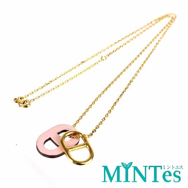 > Hermes エルメス オーマイヨン ネックレス ピンク×ゴールド金具 GP アクセサリー ペンダント ワンポイント デイリー お出かけ レディース