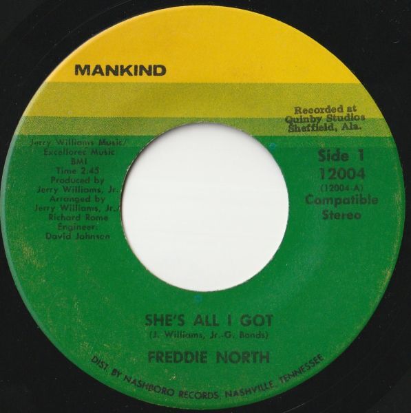 > Freddie North【US盤 Soul 7" Single】She's All I Got / Ain't Nothing In The News (Mankind 12004) 1971年 / Swamp Dogg